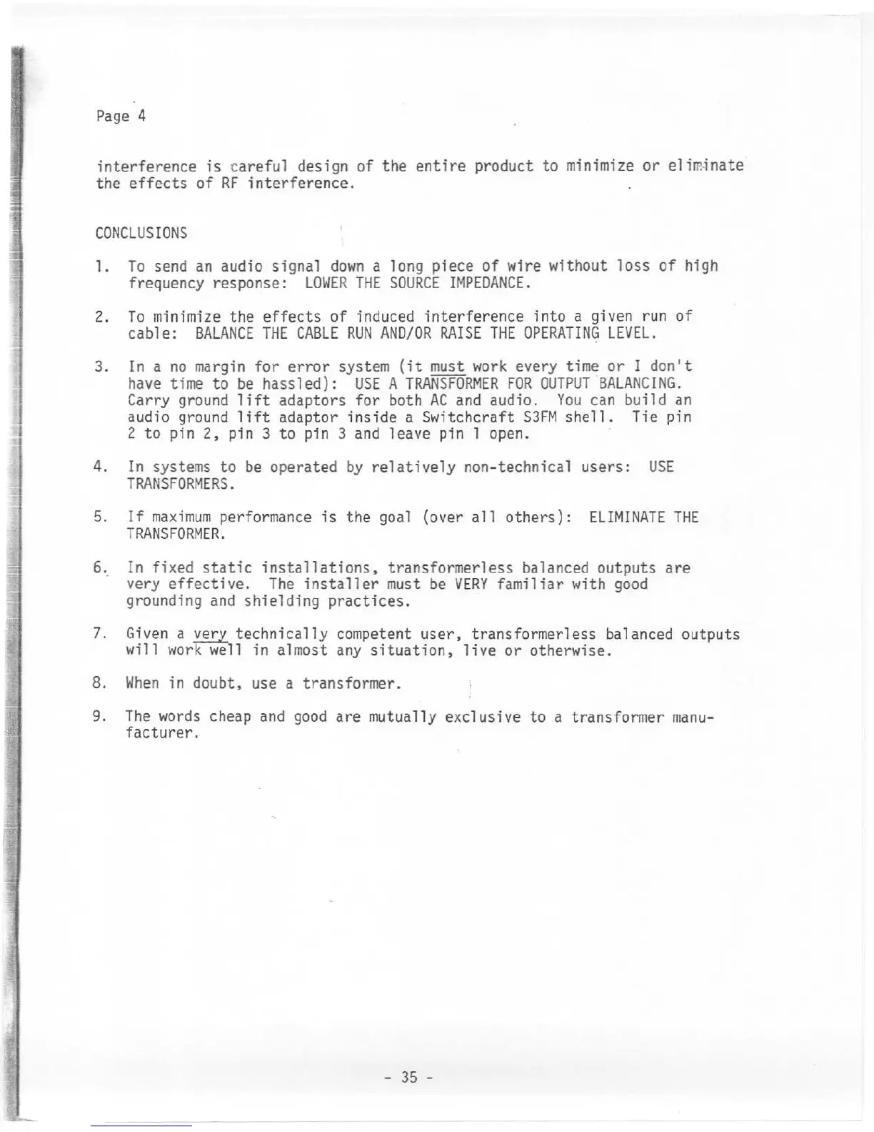 Tapco C-12 - CONCLUSIONS ON AUDIO TRANSMISSION BEST PRACTICES; Audio Transmission Best Practices