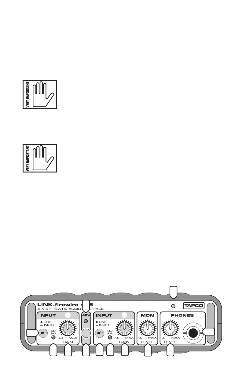 This red LED lights up when the 48V phantom power switch [4] is