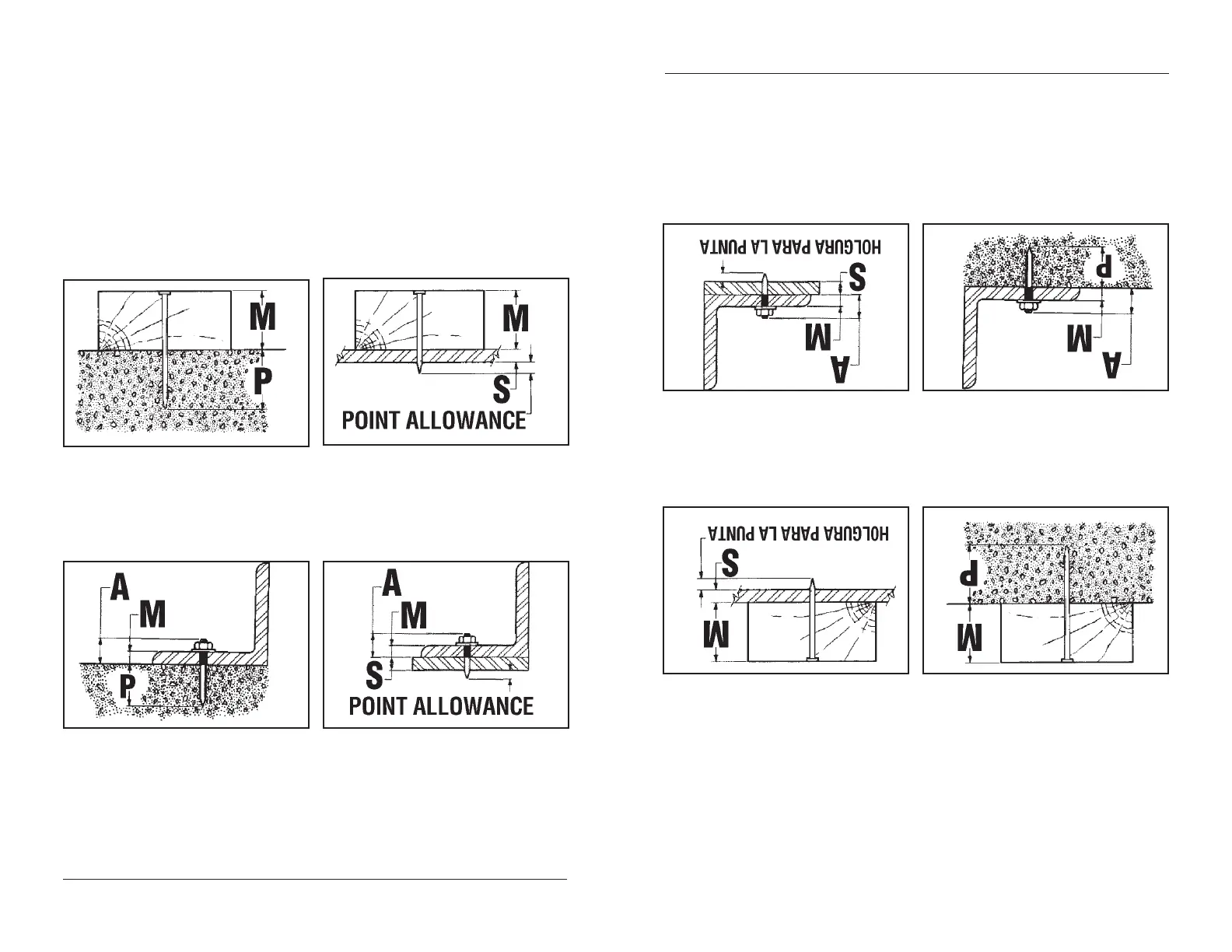 *Holgura para espesor de tuerca y arandela = tamaño rosca (o sea, deje 1/4" para rosca de 1/4-20, etc.)
