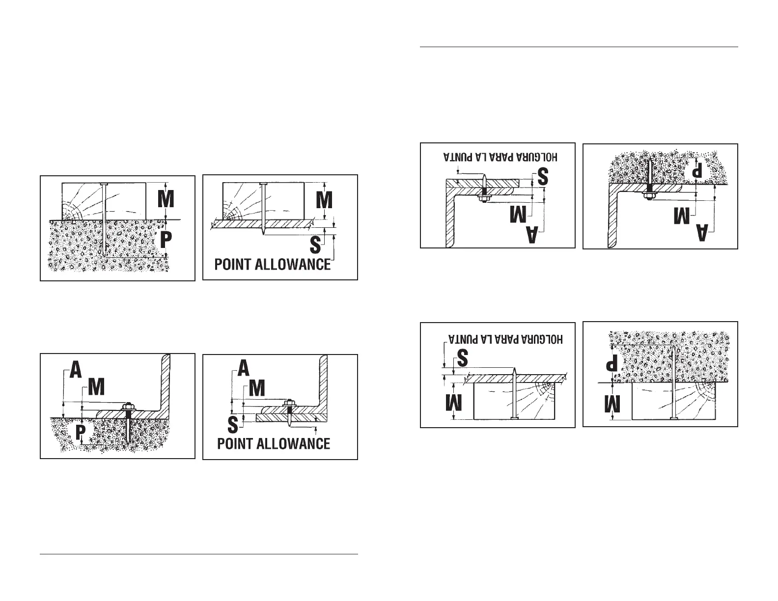 *Holgura para espesor de tuerca y arandela = tamaño rosca (o sea, deje 1/4" para rosca de 1/4-20, etc.)