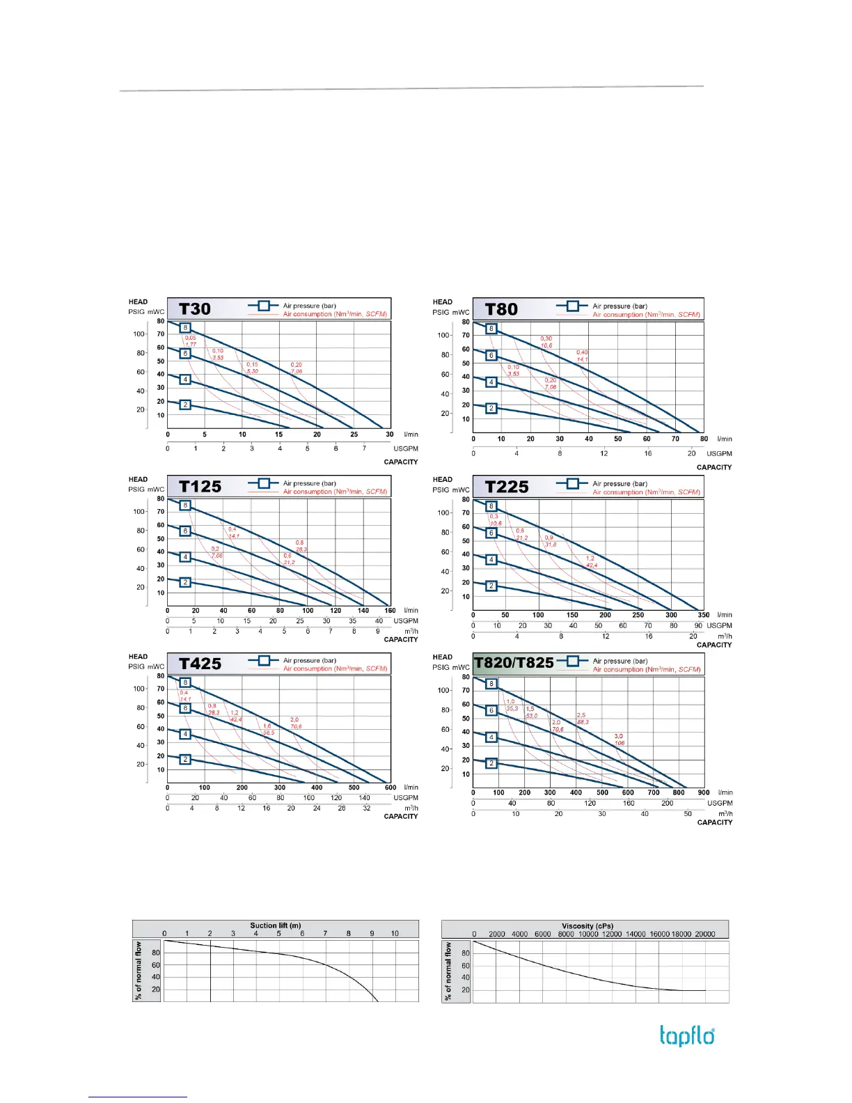 TapFlo T30 - Technical Data and Performance; Pump Capacity Curves; Capacity Changes Analysis