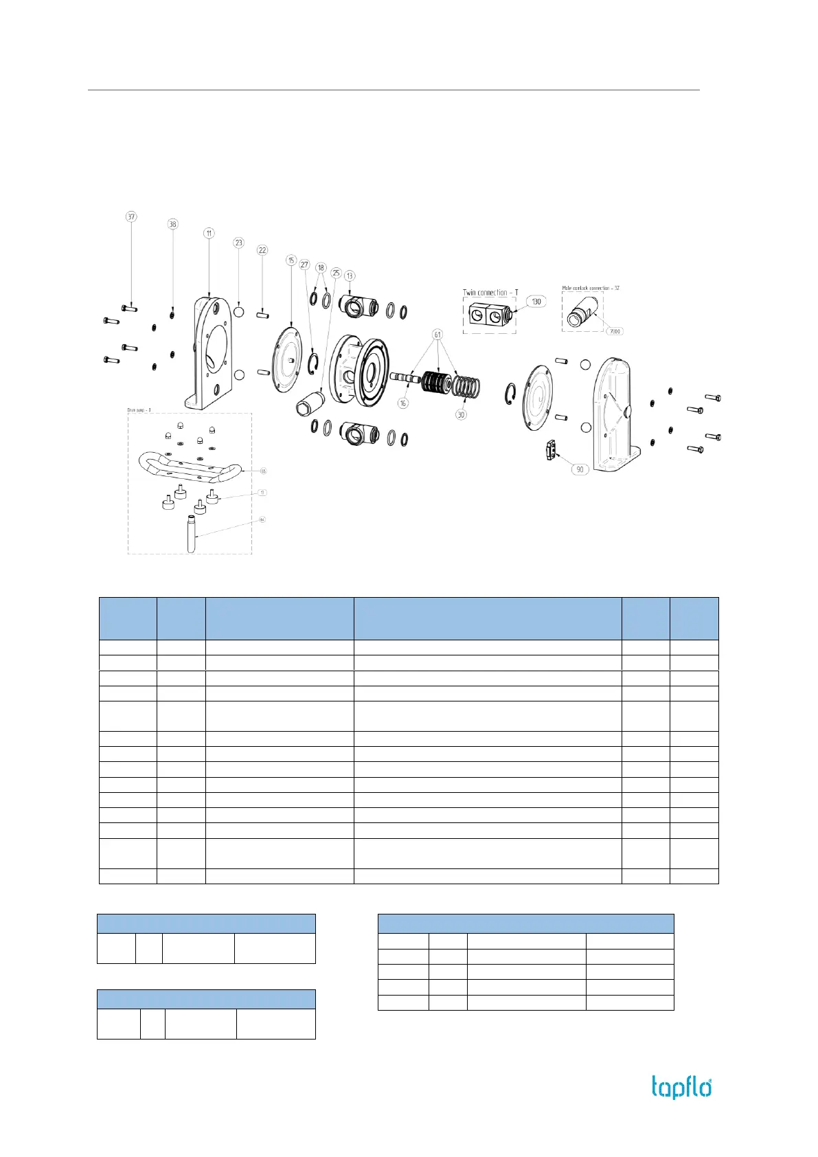 EPDM, PTFE, AISI 316L. PU, NBR, ceramic, FKM