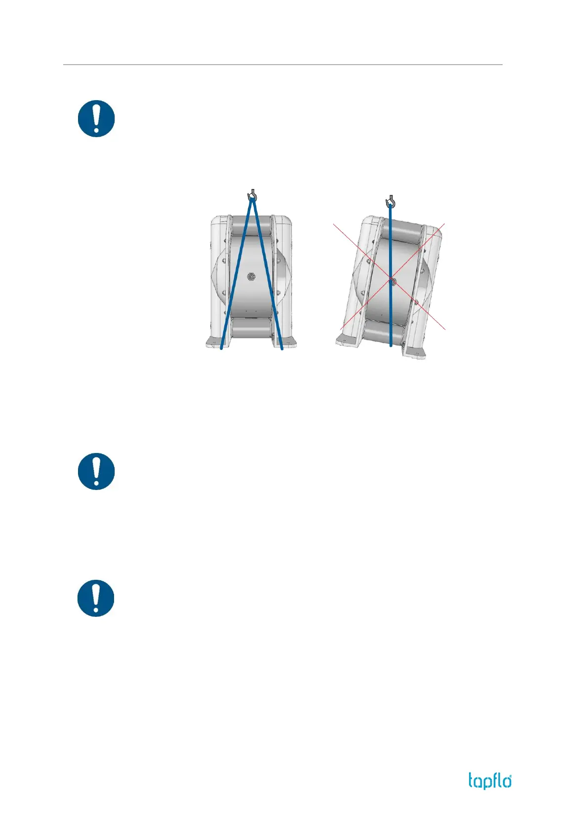 Never lift the pump with only one sling. Incorrect lifting can cause serious injury and/or damage