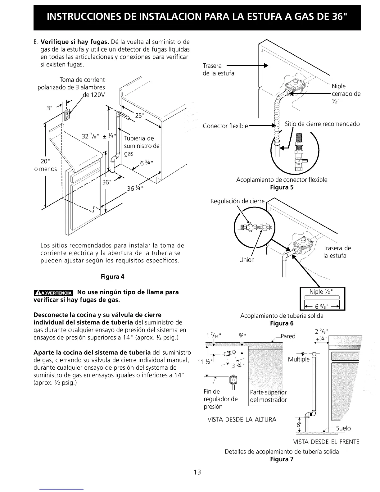 gas de la estufa y utilice un detector de fugas I[quidas