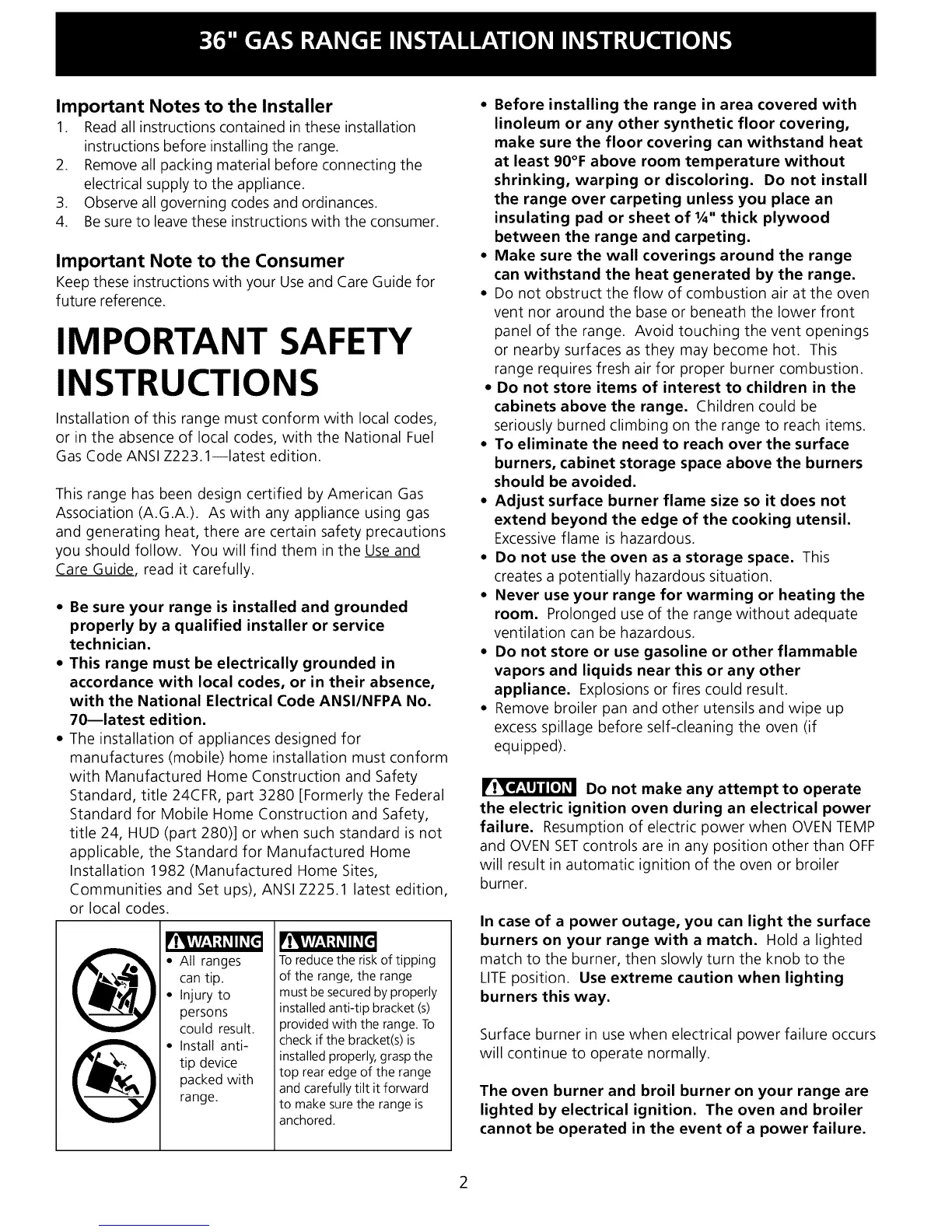 instructions before installing the range.