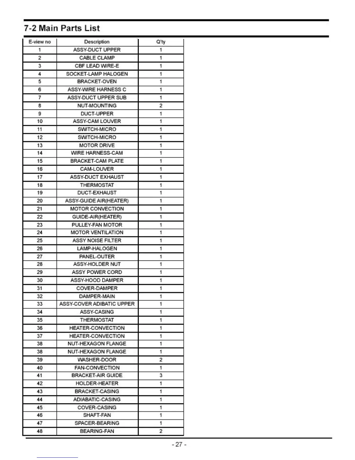 Tappan TMV151FBA - Main Parts Identification and Listing; List of Major Oven Components (1-48)