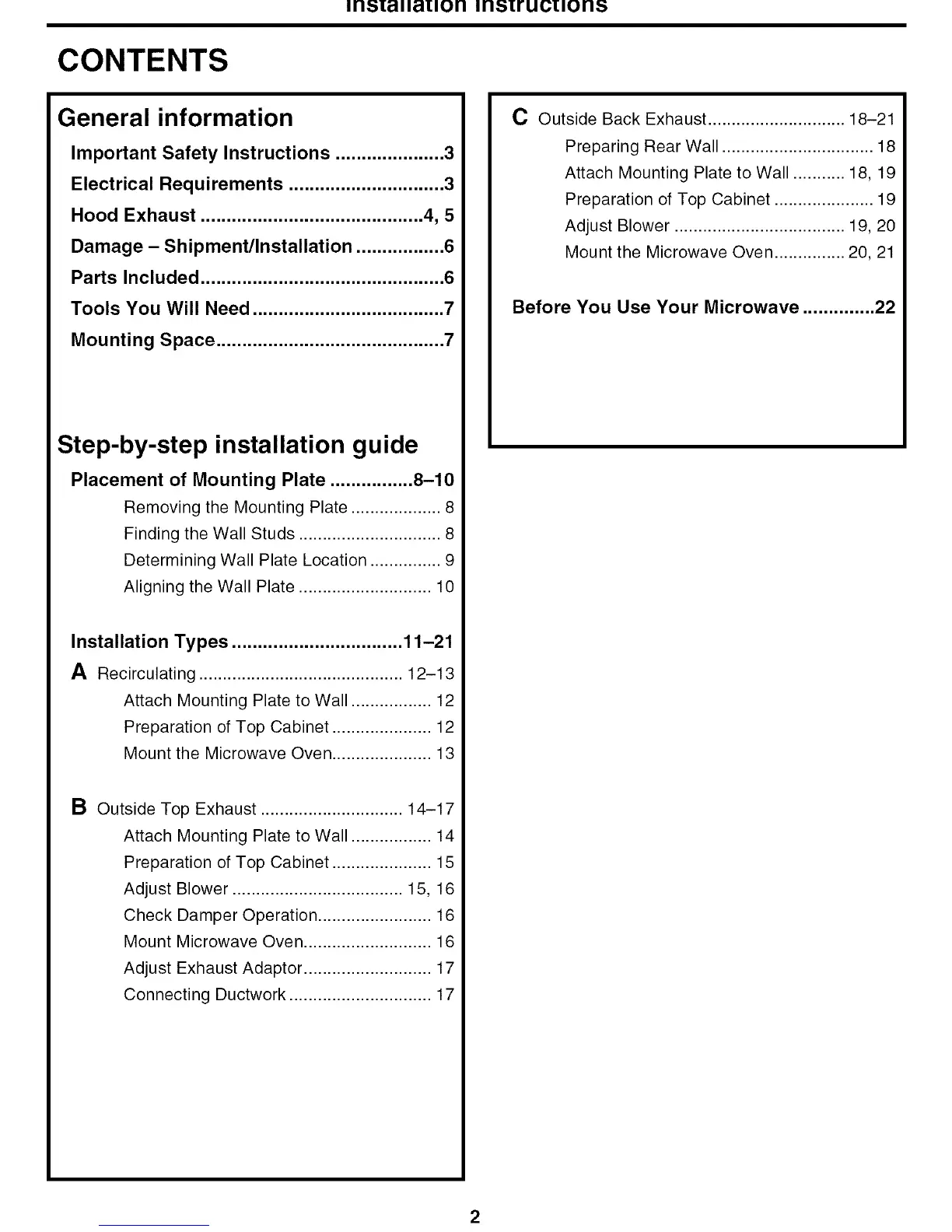 Mount Microwave Oven ........................... 16
