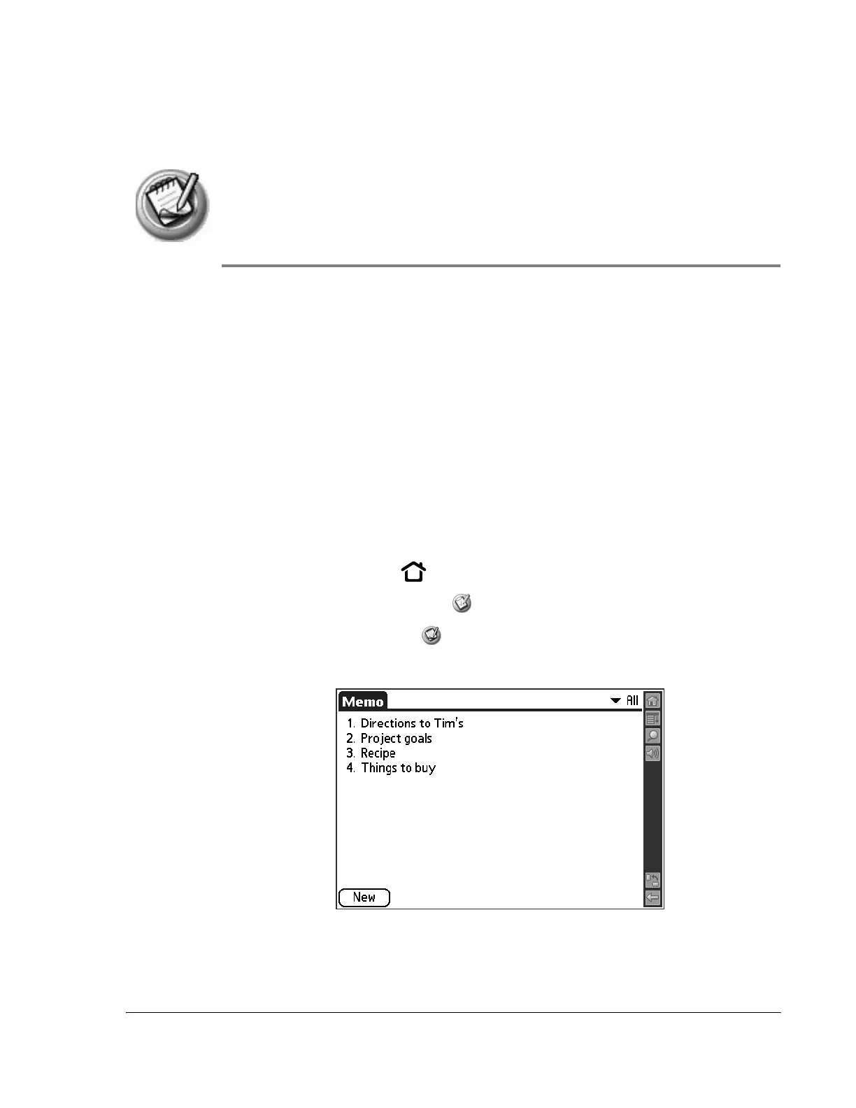 3. Select the Memo Pad icon .
