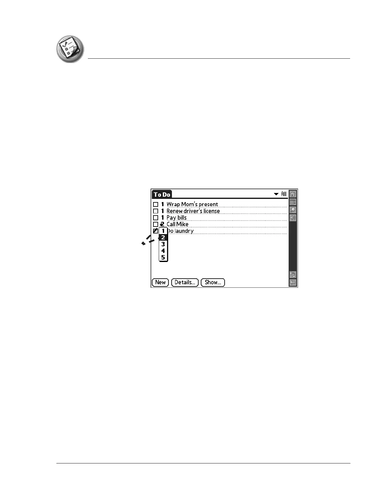 2. Tap the Priority number on the left side of the To Do List item.
