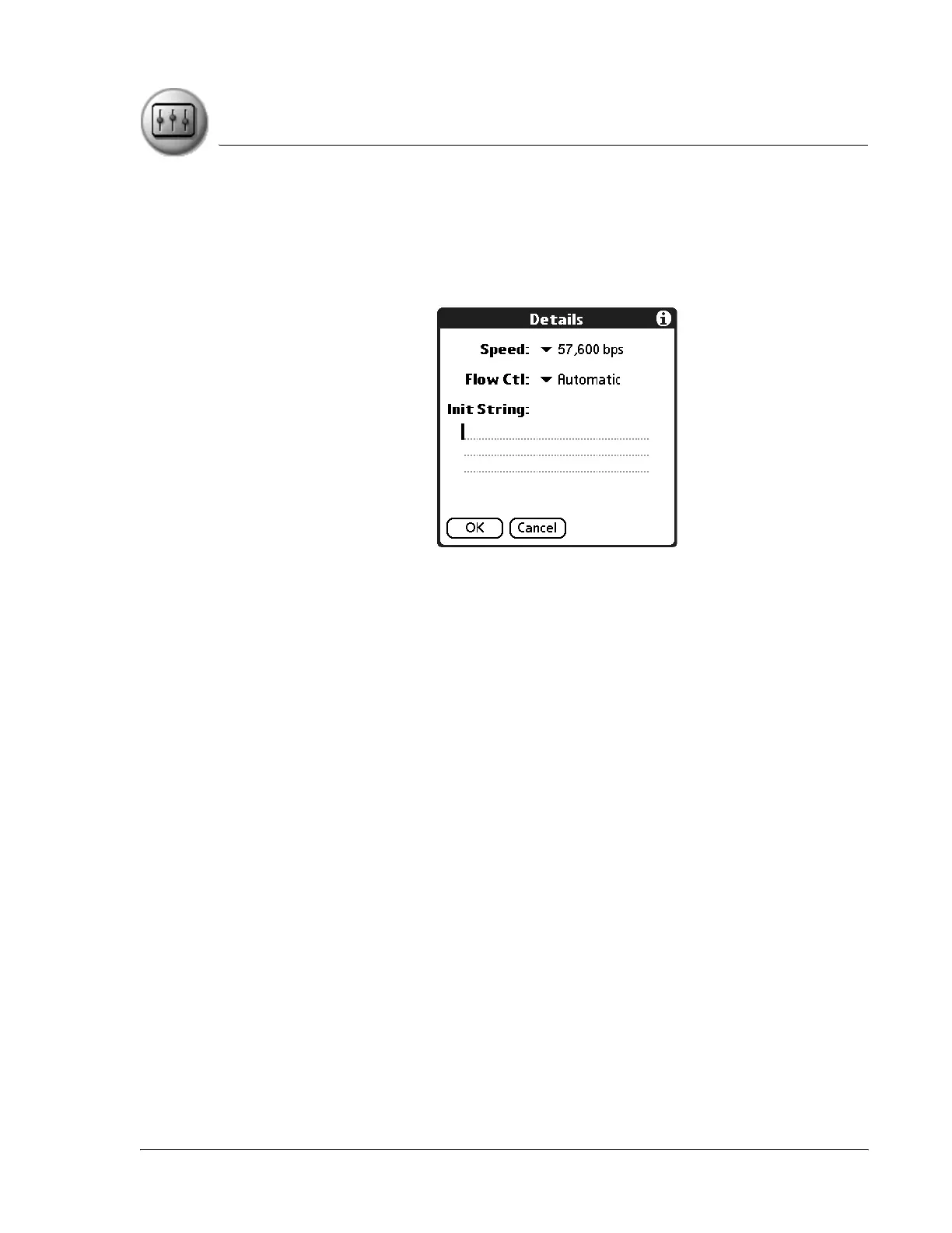 – Init String (modem and phone only). Enter or edit text to change