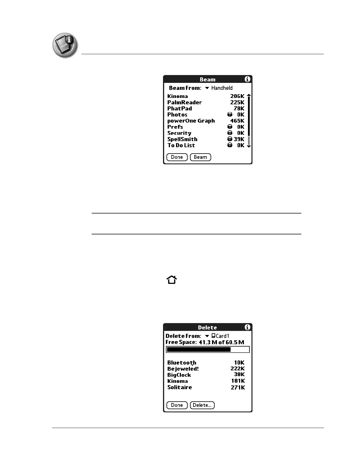 7. Select the application you want to beam or send, then tap Beam or tap