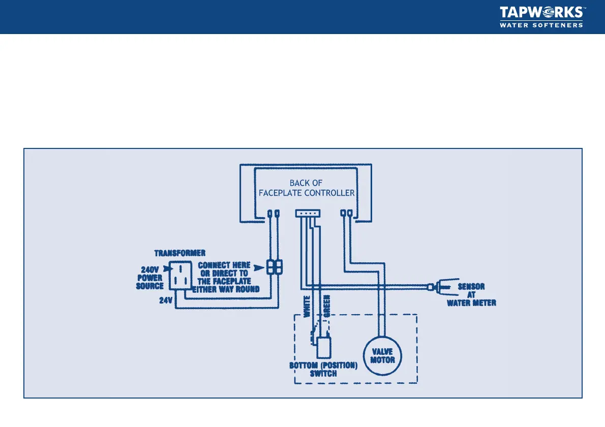The water softener works on a 24 volt, 50 Hz electric power supply.