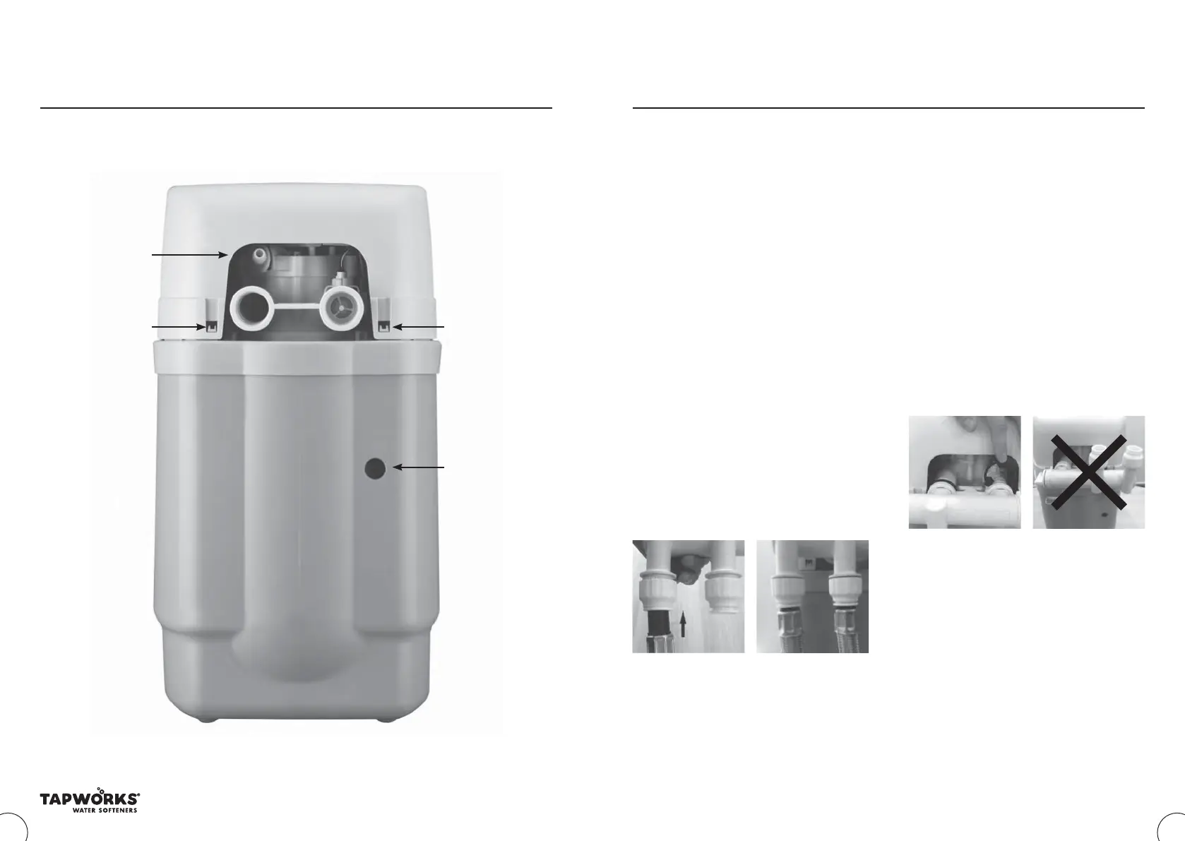 FAILURE TO FIT THE HOSES CORRECTLY CAN DAMAGE THE WATER SOFTENER.