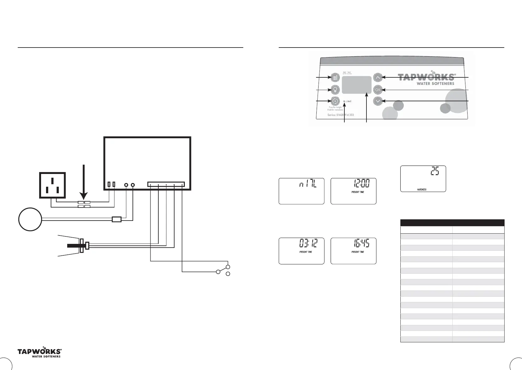 Connecting to electrics Programming the water softener