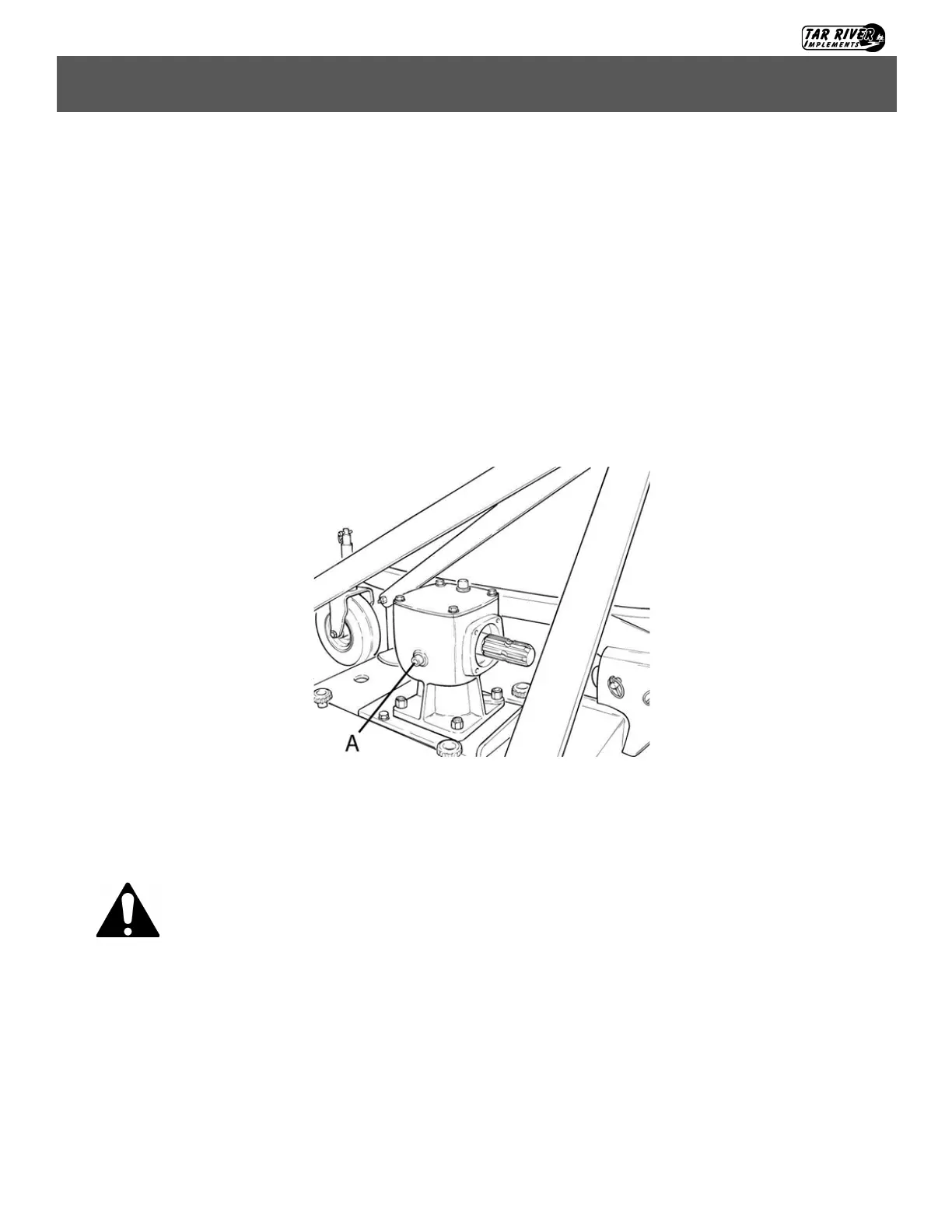 After 50 working hours, check the oil in the gearbox (A) and make sure that all the screws and bolts are