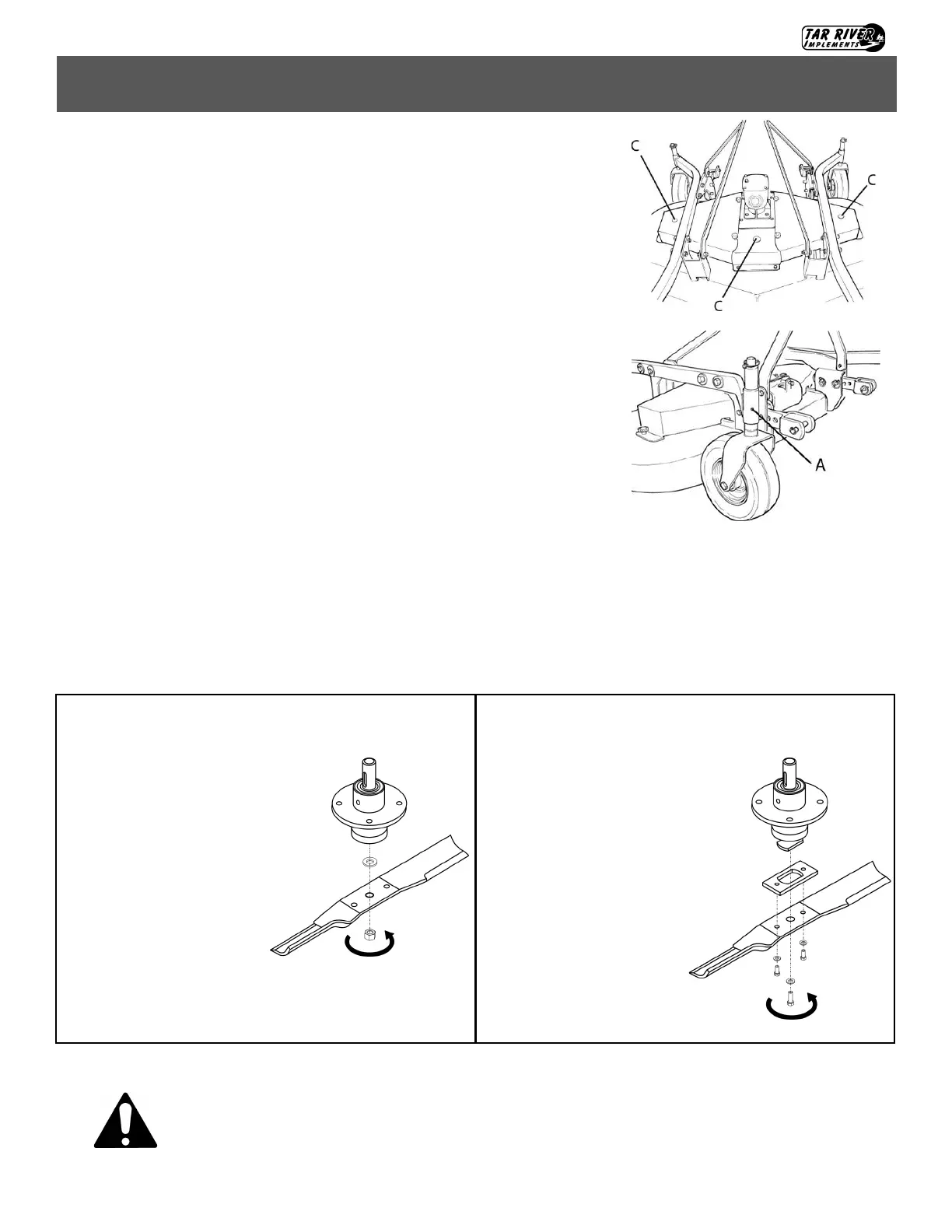 Danger: Before replacing the blades, turn the tractor engine off, pull the parking