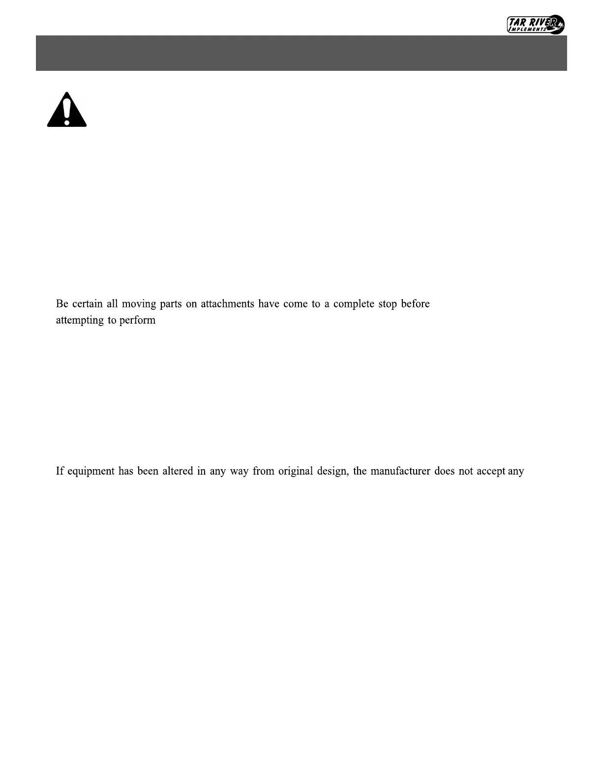 • Check all the tightness of all hardware on the rotary cutter on a regular basis. Check condition of blades