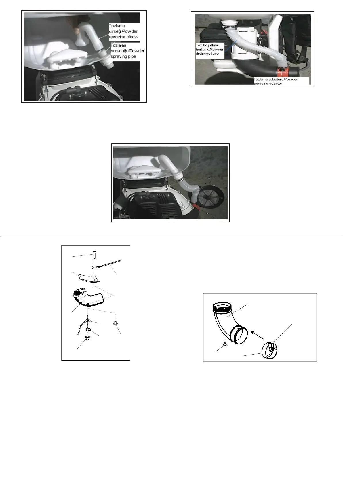 Toz ilaç atarken oluþan statik elektriði topraklama için topraklama zincirini aþaðýdaki þekilde monte ediniz.