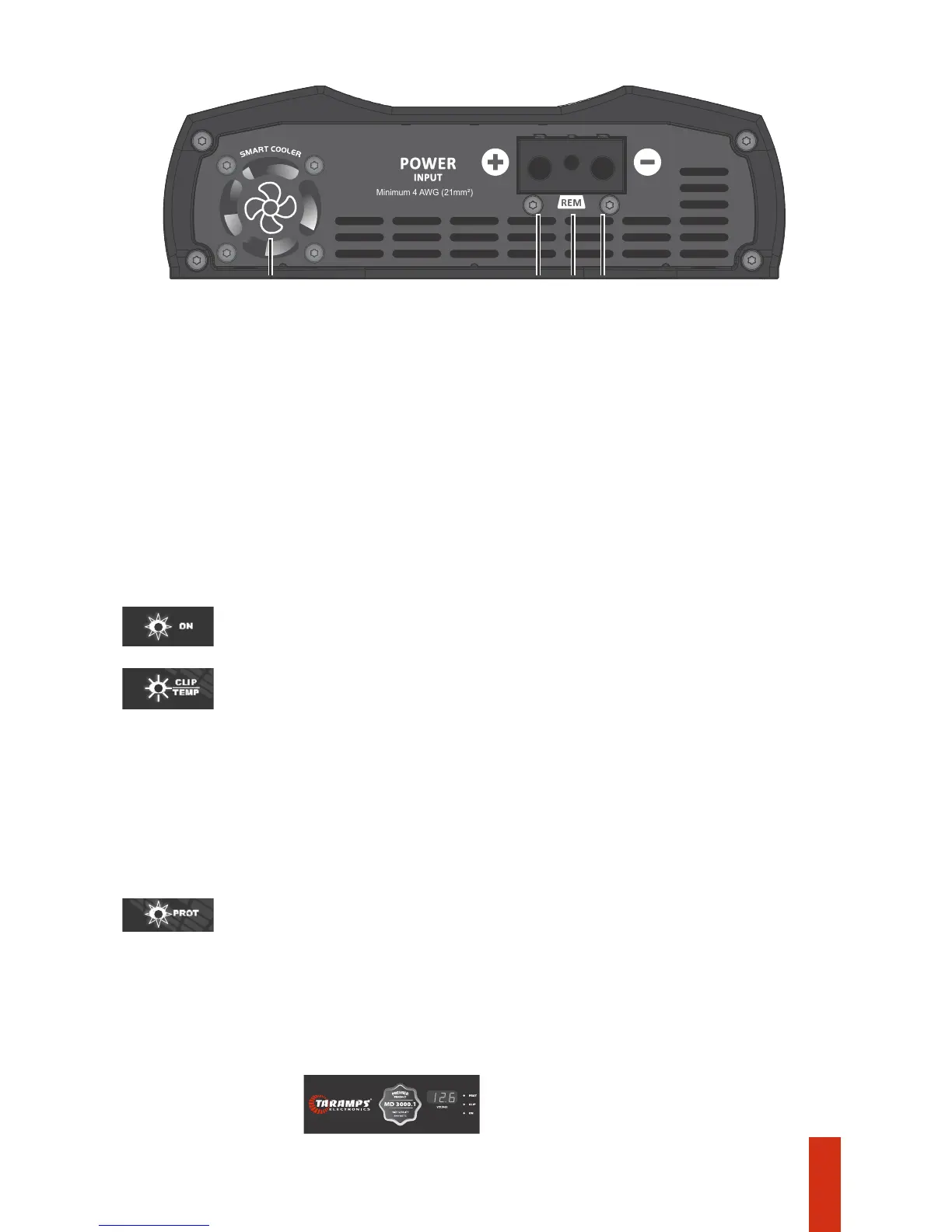 NOTA: Somente o amplificador MD 3000.1 PREMIER possui o voltímetro na parte superior do
