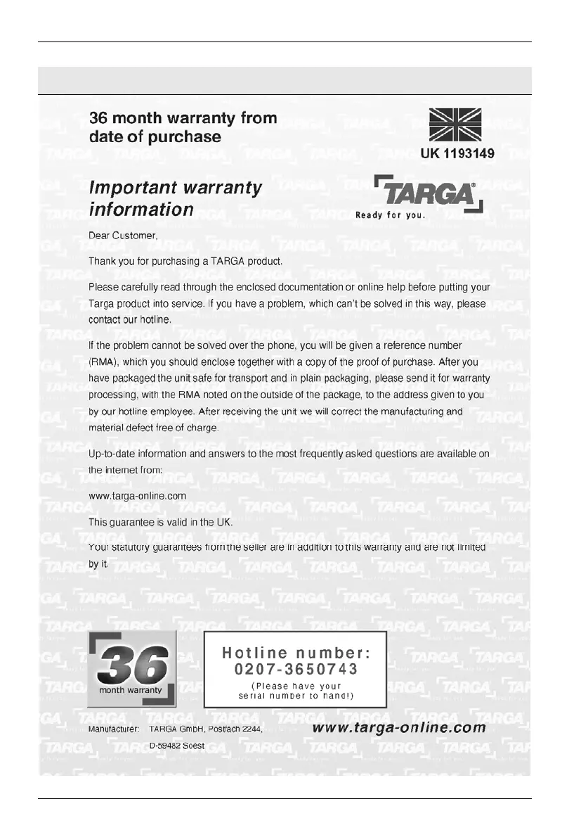 Targa DataBox V 320 - Details of Guarantee