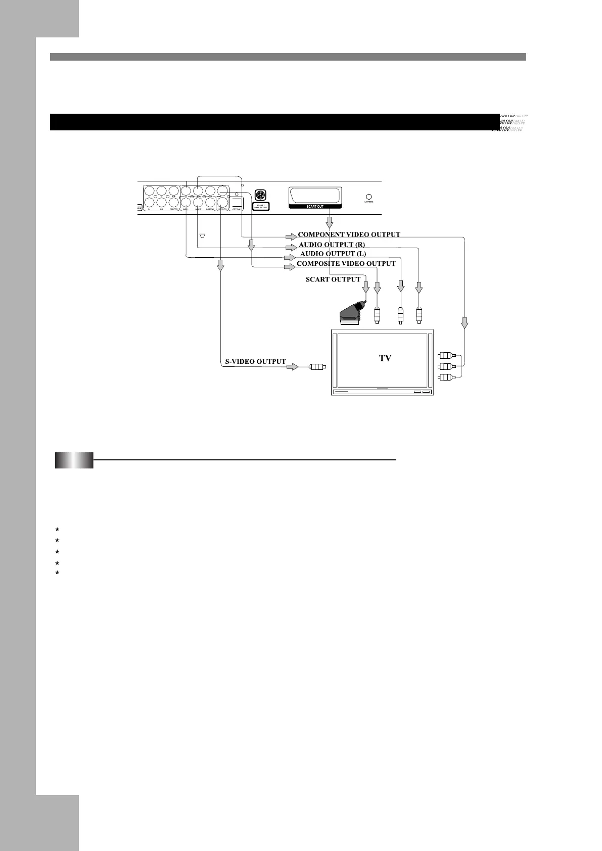 (1) If your TV has a SCART input connector, connect the out jacks on the DVD player to the corresponding input on the TV.