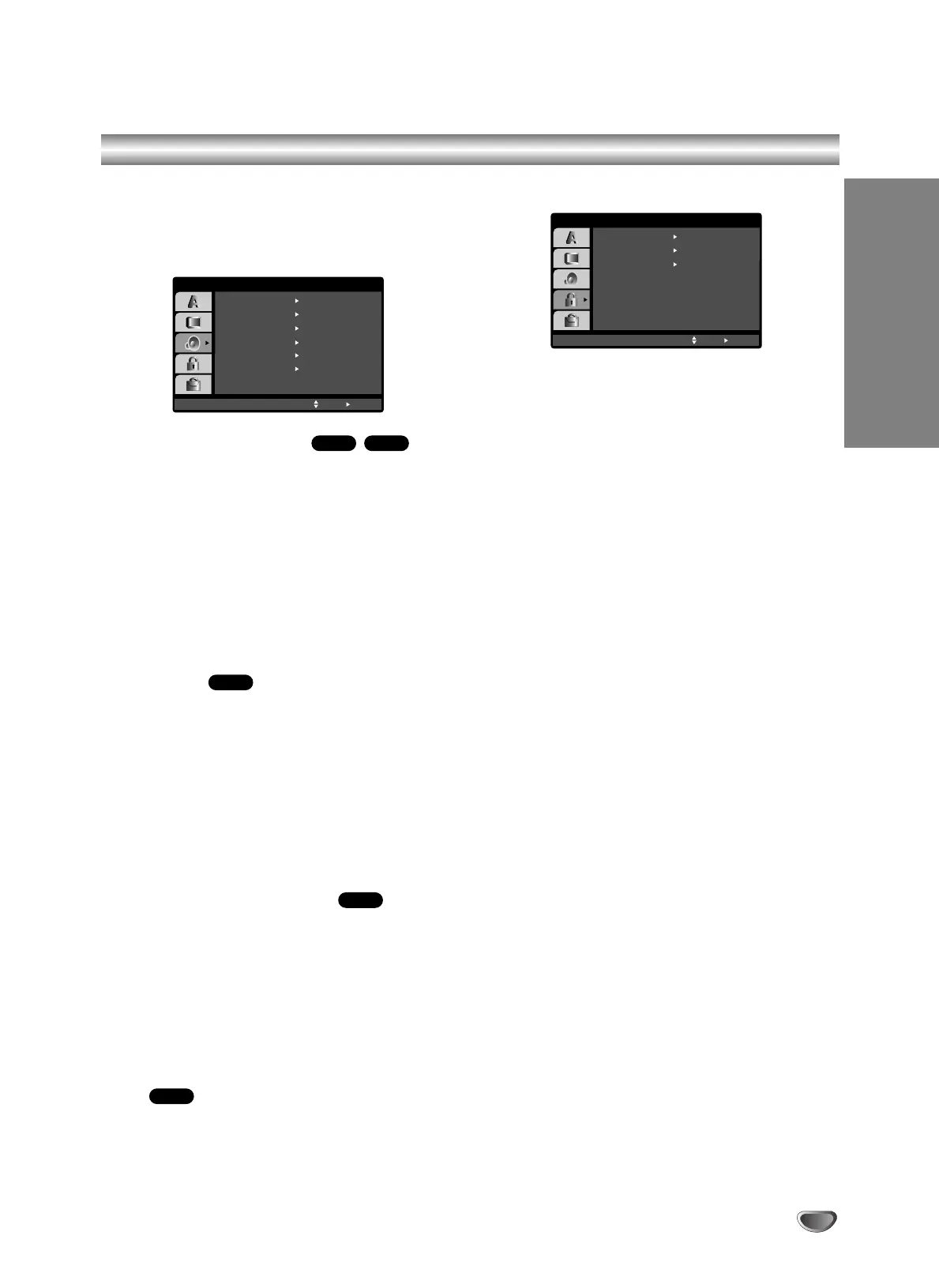 1. Select “Rating” on the LOCK menu then press B.