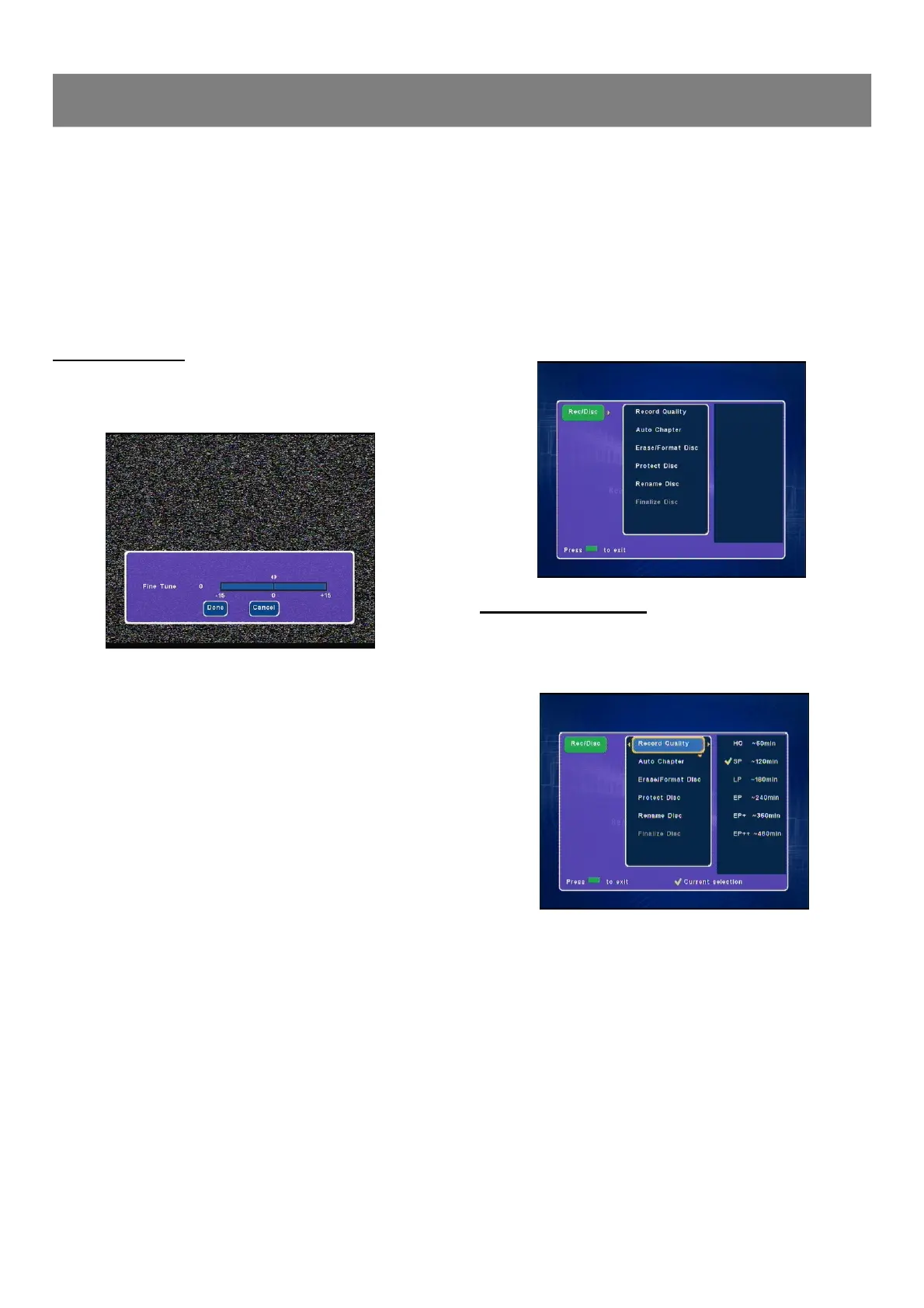 (Rec/Disc ---> Record Quality, Auto Chapter, Erase/Format