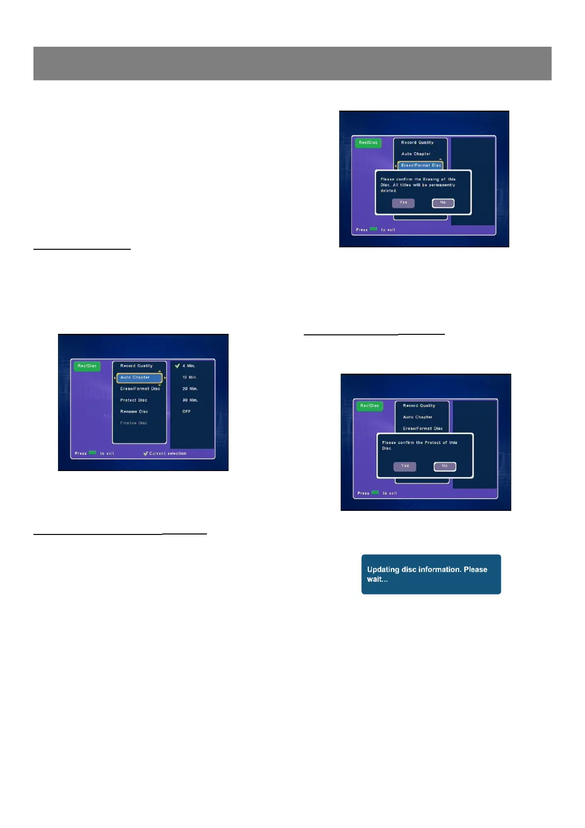 1. Select “Erase/Format Disc ”then press Enter , a message