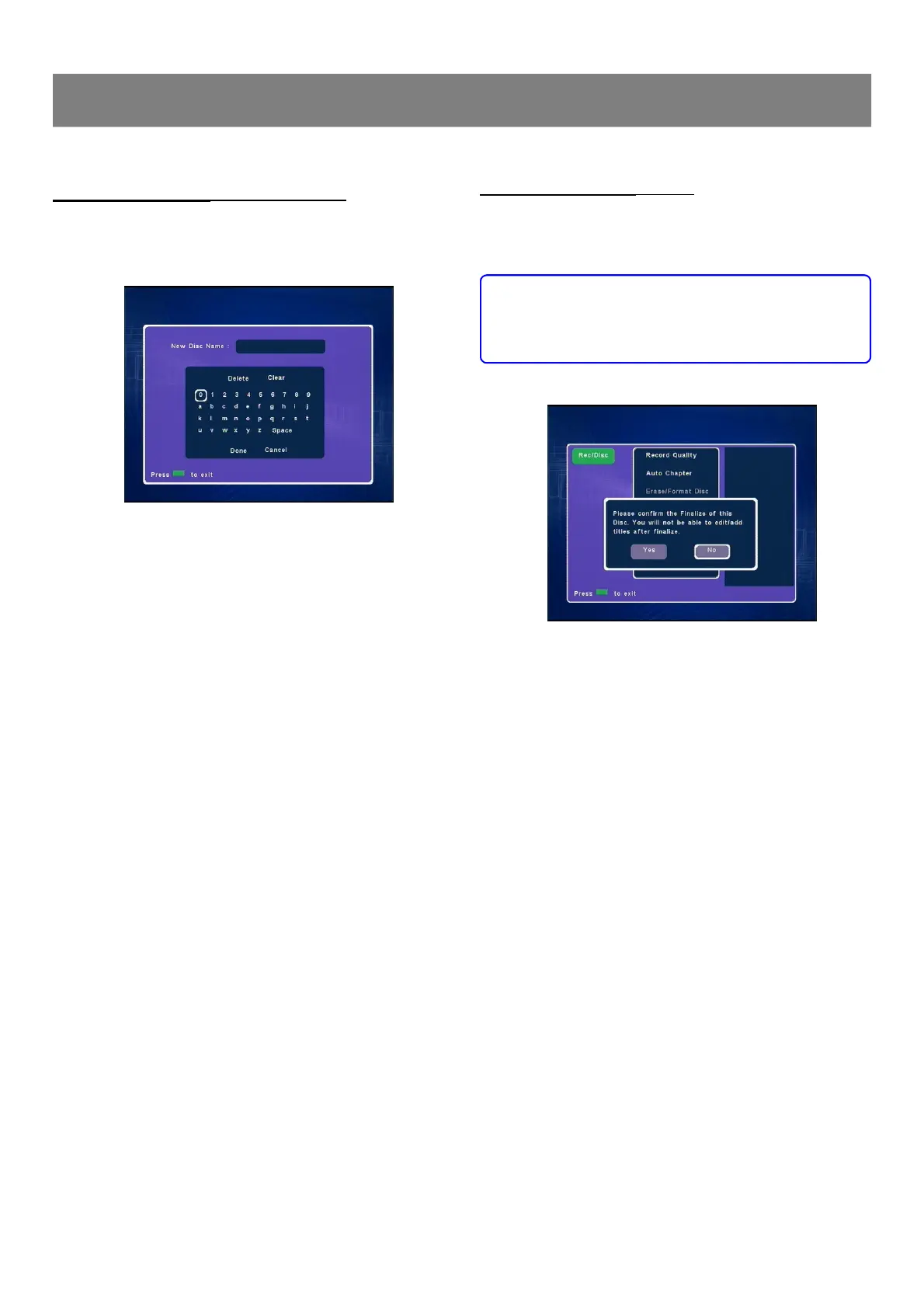 1. Select “Finalize Disc ”then press Enter, a message appears.