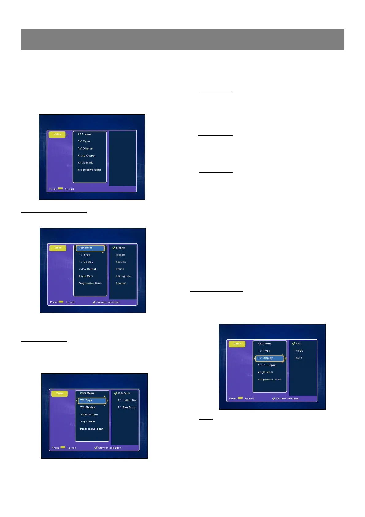 (Video ---> OSD Menu,TV Type, TV Display, Video Output &