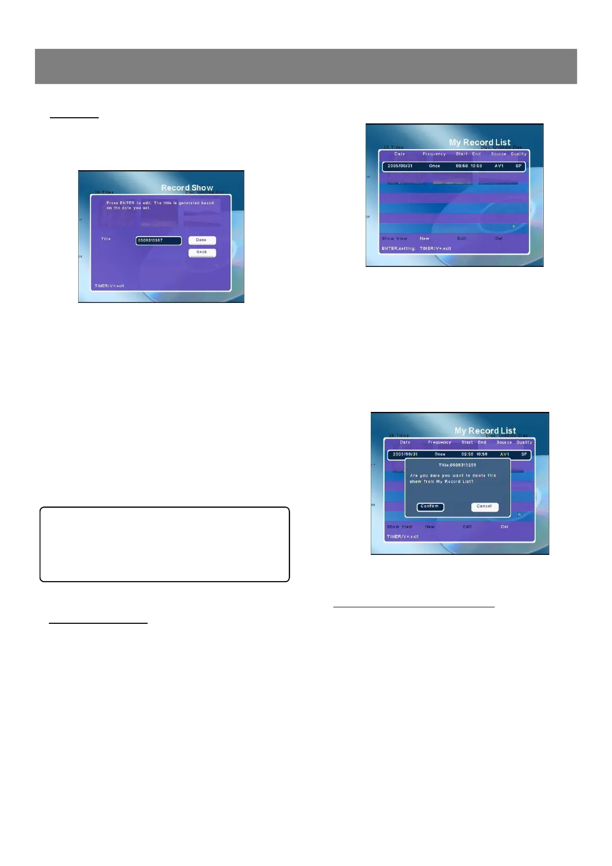 “Record Show”screen returns.