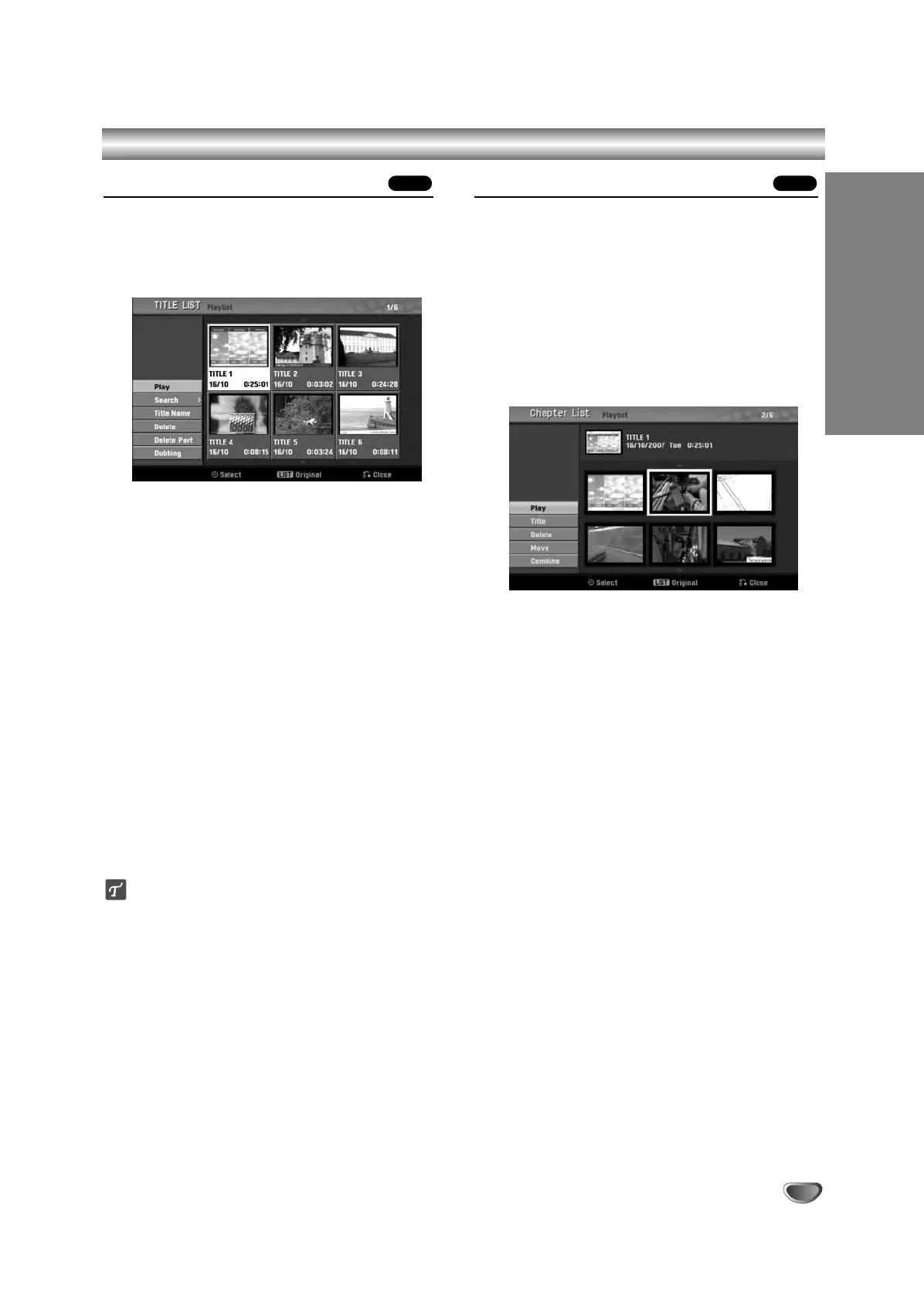 Title List and Chapter List Menu (Continued)