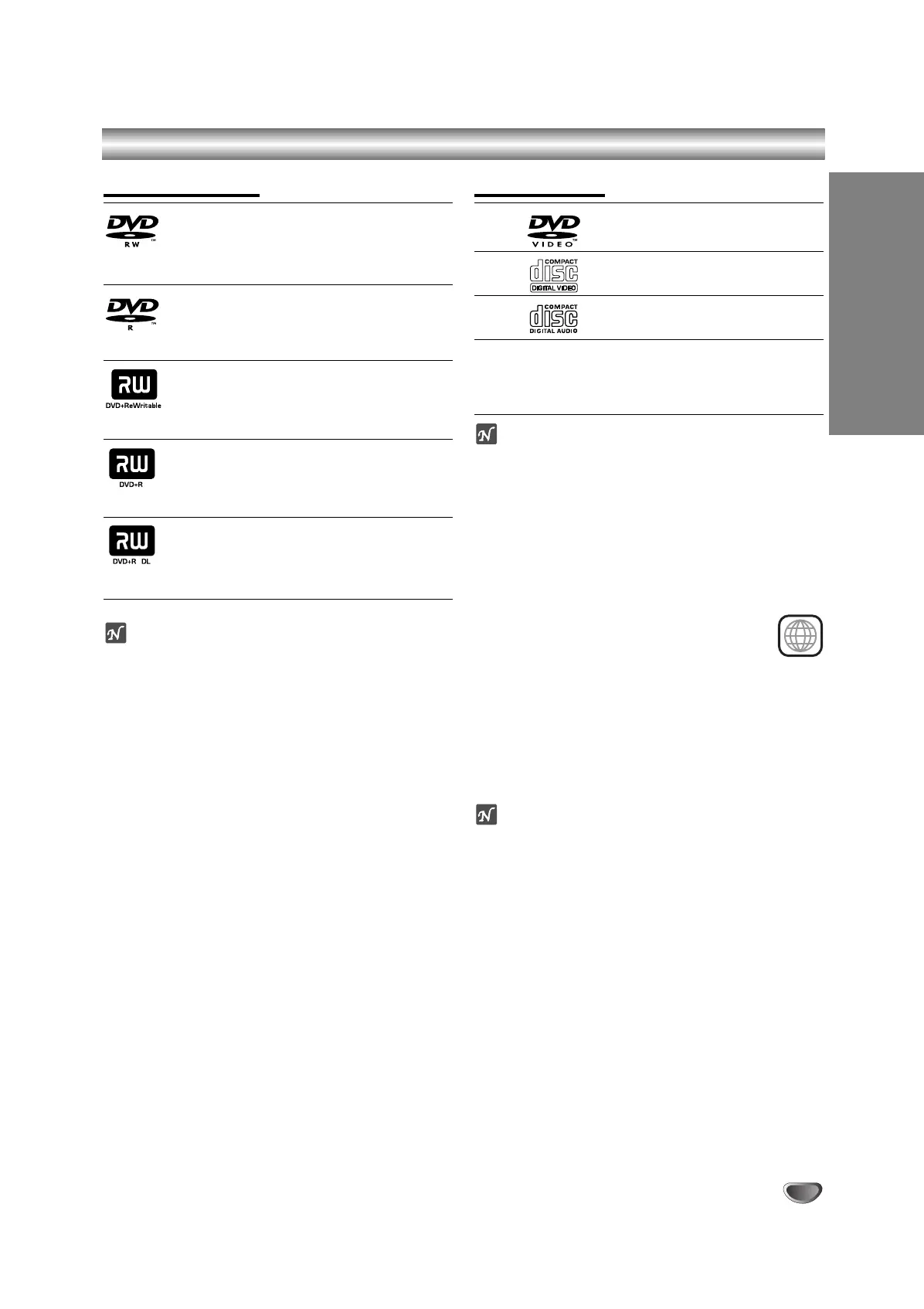 – DVD-R/RW, DVD+R/RW and CD-R/RW discs record-