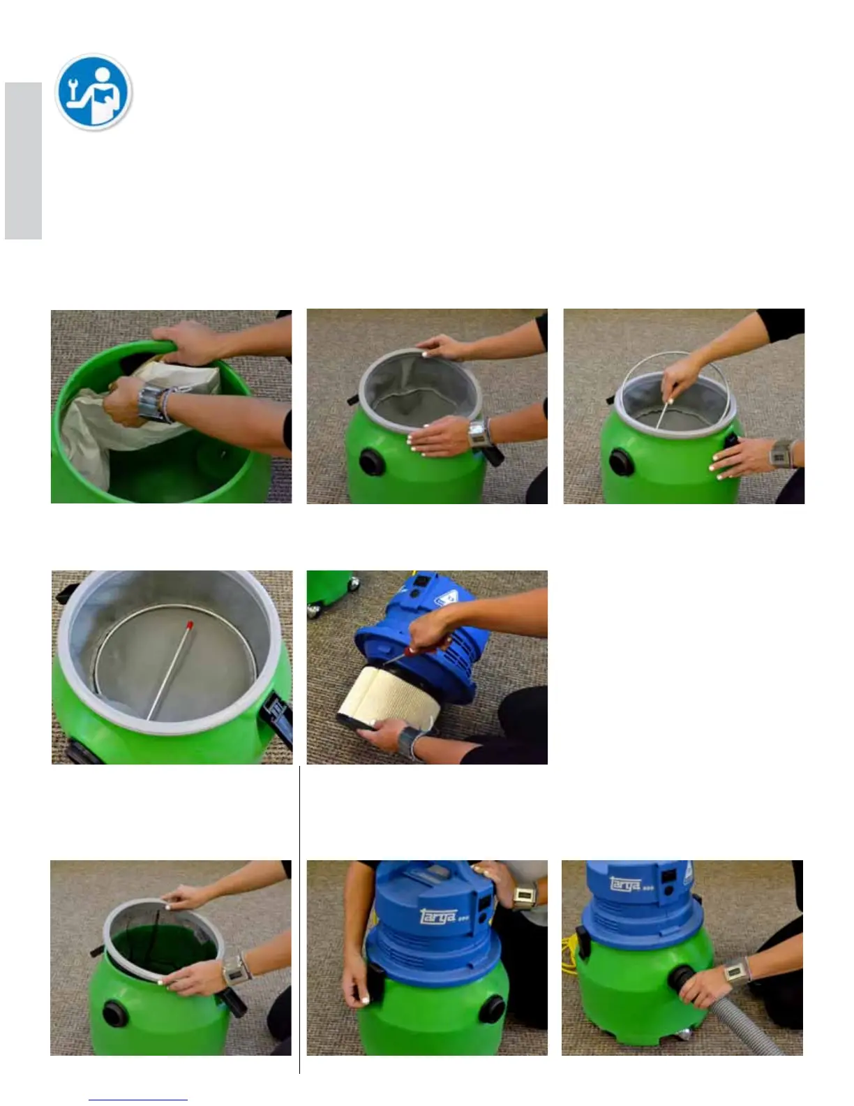 Remove vacuum and accessories from packaging and verify that everything listed on the parts list is present.