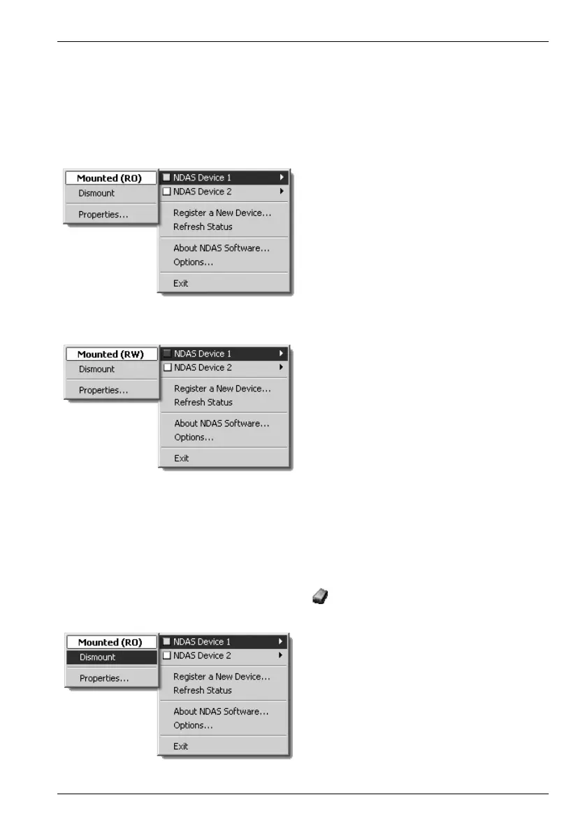 (in the example, "NDAS Device 1") and then click "Dismount" (see figure below).