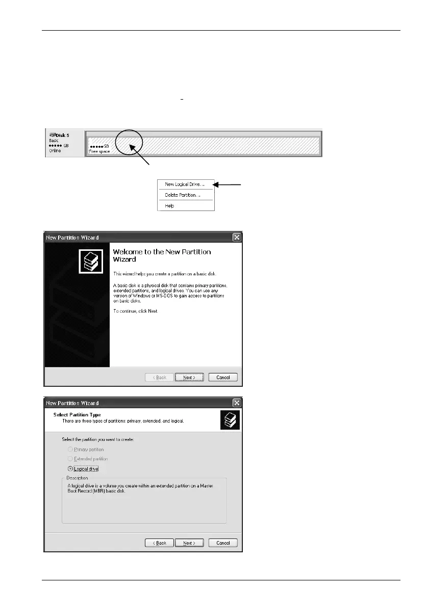 enlarged partition now serves to hold new logical drives. Right-click on the free storage