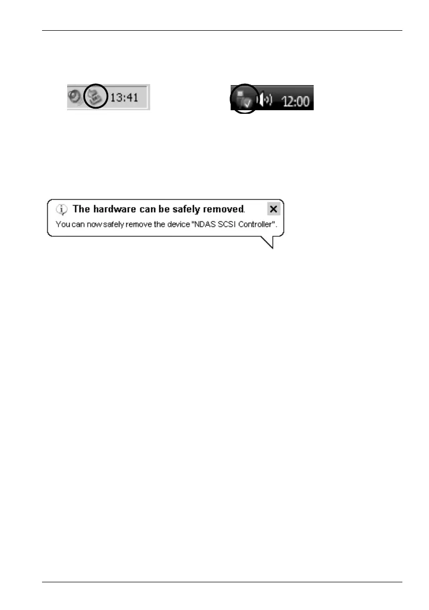 Kmalu se prikaže sporočilo, da lahko enoto Targa DataBox NDAS 500 eSATA varno