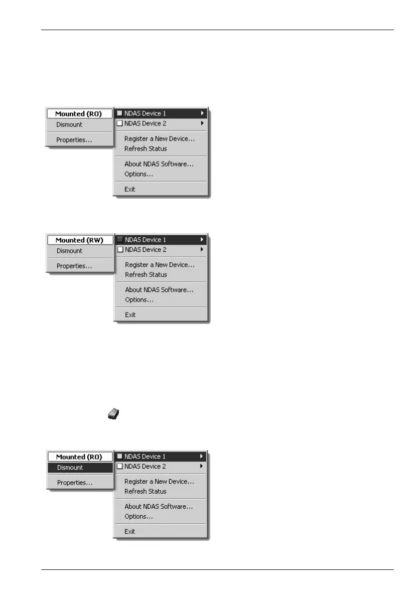 vedno na voljo. V opravilni vrstici se odpre meni "NDAS Device Management", ki je