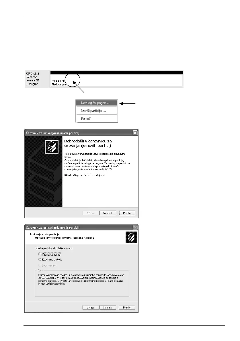 priročnega menija kliknite z desno miškino tipko na nezaseden pomnilnik. S klikom z