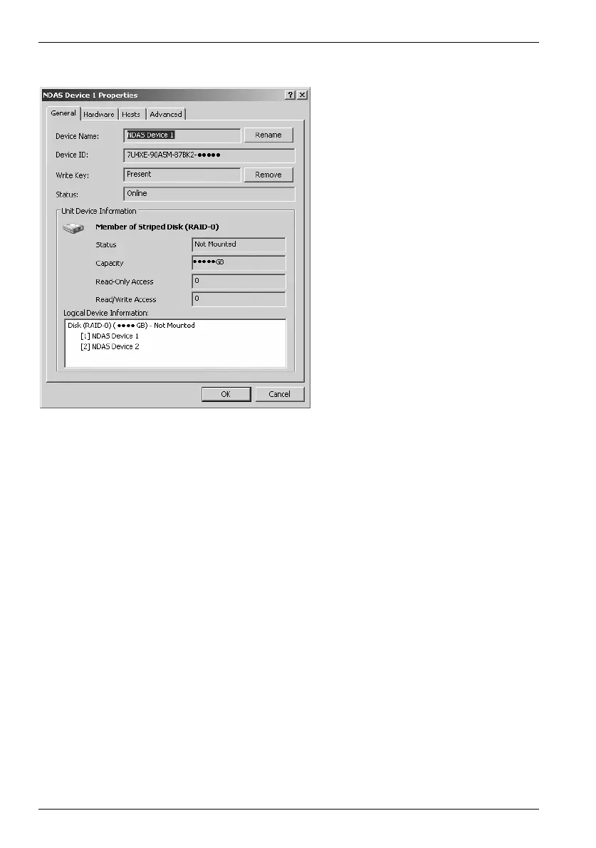 DataBox NDAS 500 eSATA ter o priključenem trdem disku in o uporabnikih, ki so