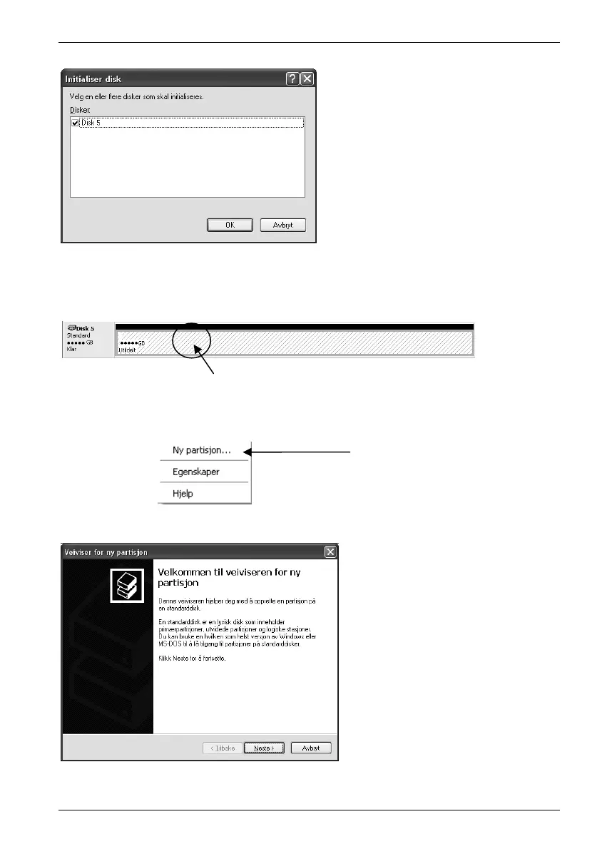 Konfigurer en partisjon ved å klikke på det hvite området (se figuren) med høyre
