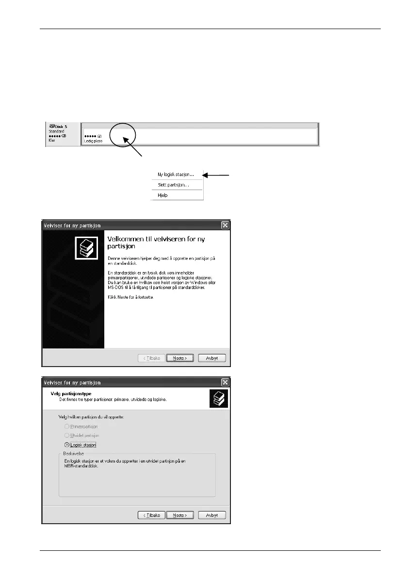 forstørrede partisjonen fungerer nå som en beholder for logiske stasjoner. Høyreklikk