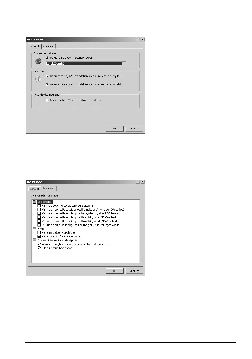 bekræftelsesdialoger. Under overskriften Menu kan du slå forskellige