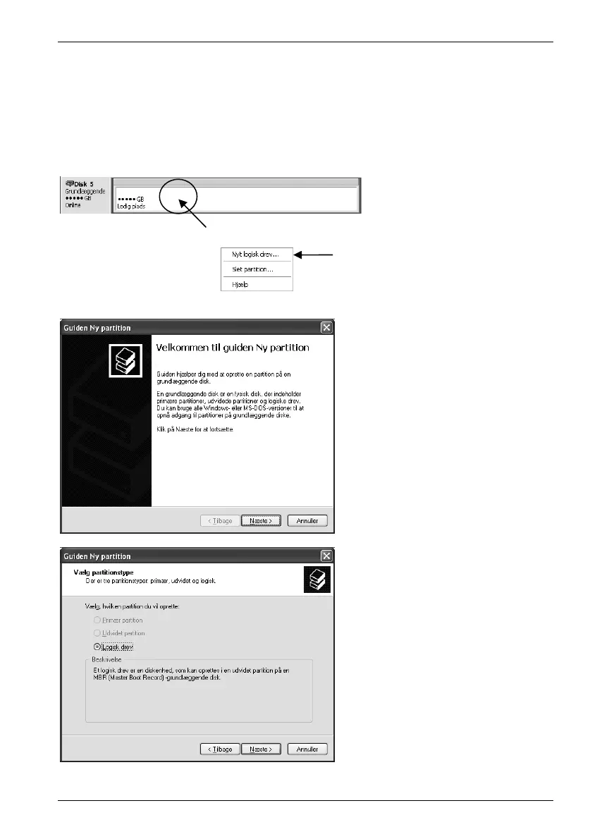 partition fungerer nu som lager for nye, logiske drev. Højreklik på ledig