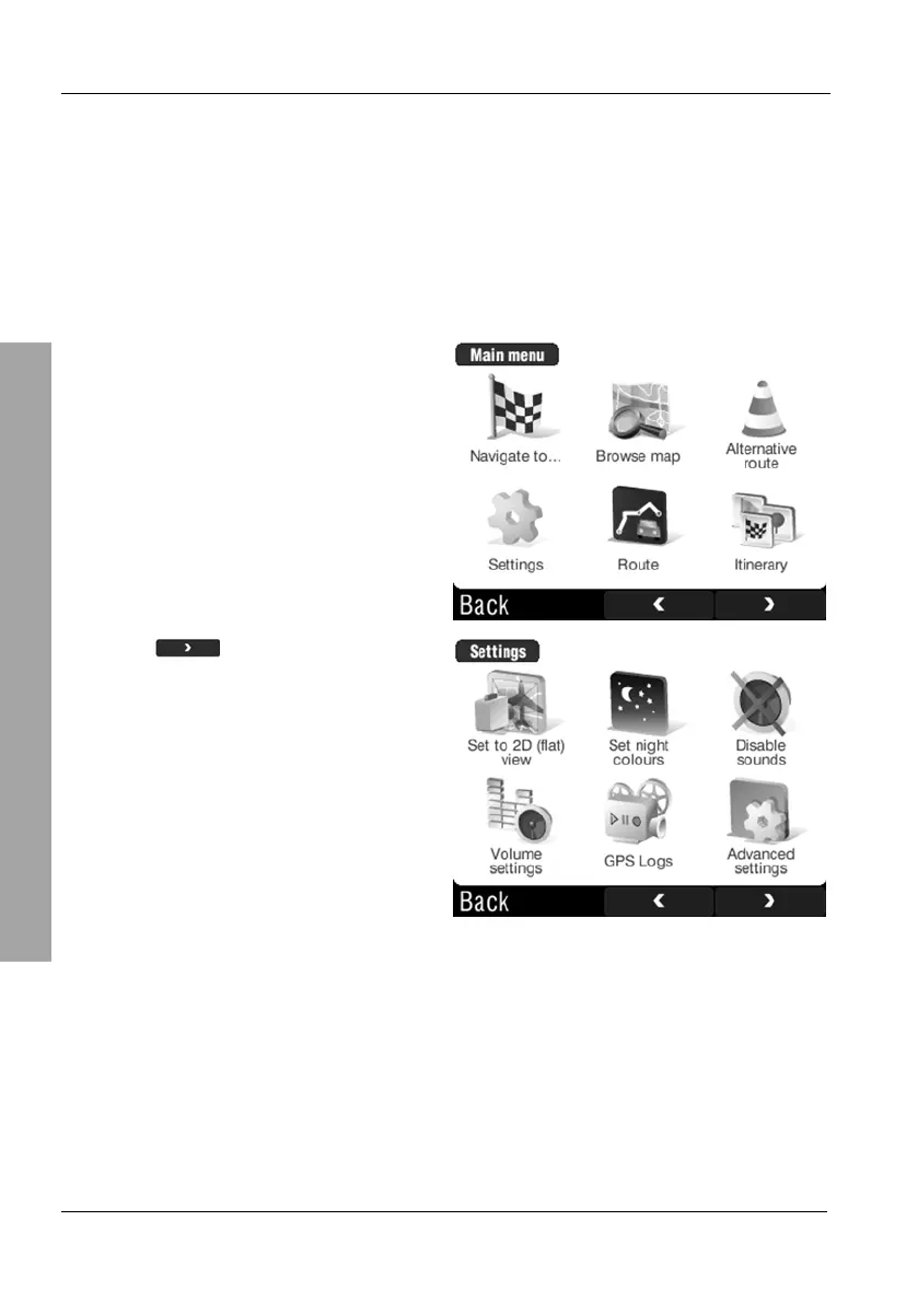 Tap on the display to open the GPS main menu.