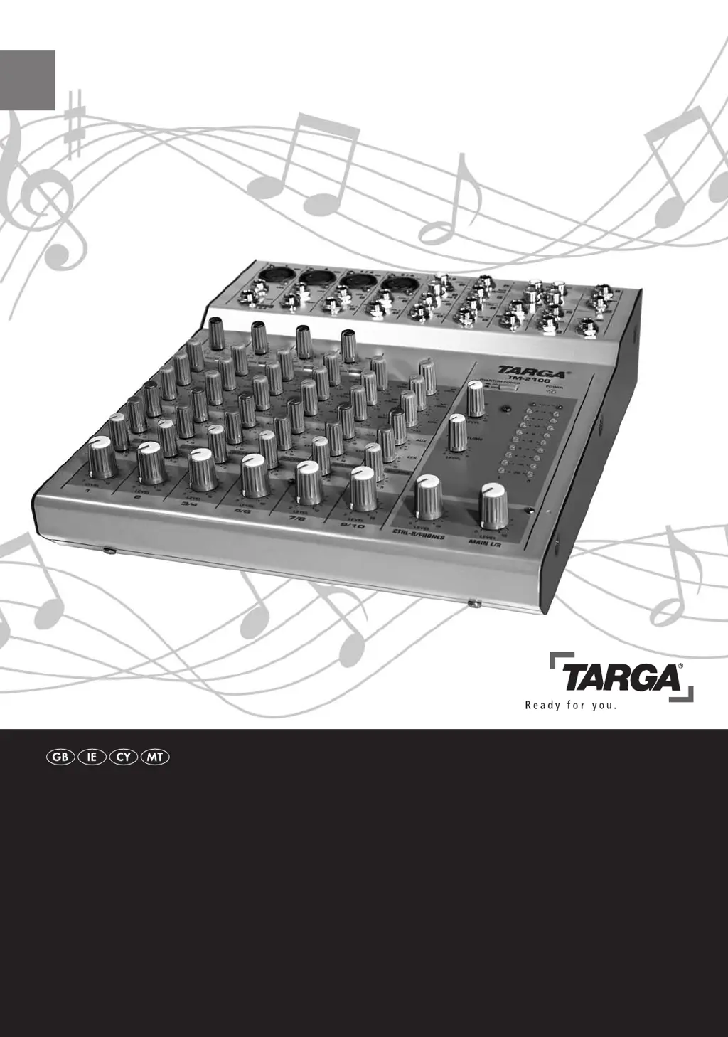 If your Targa Music Mixer has no sound, first ensure the mixing console is powered on by checking the POWER switch on the back panel. Verify the power adapter is securely connected to both the mixer and a working power socket. Also, check that your sound source (microphone, instrument, input device) is correctly connected to the appropriate input jack. Finally, adjust the input levels using the TRIM and LEVEL controls on the channels where your devices are connected, and adjust the overall output level using the MAIN L/R control on the lower right of the mixer.