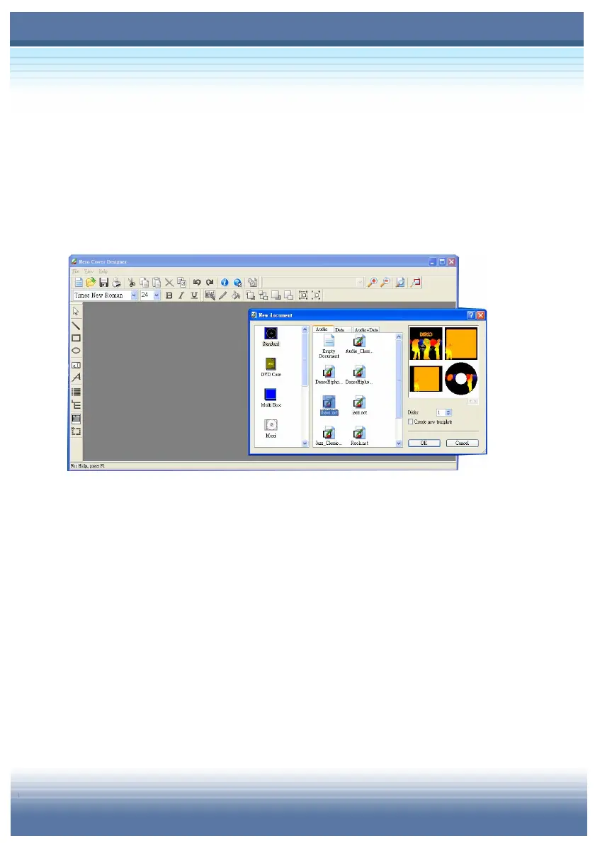 kinds of CD covers. When you open a new document, it will show