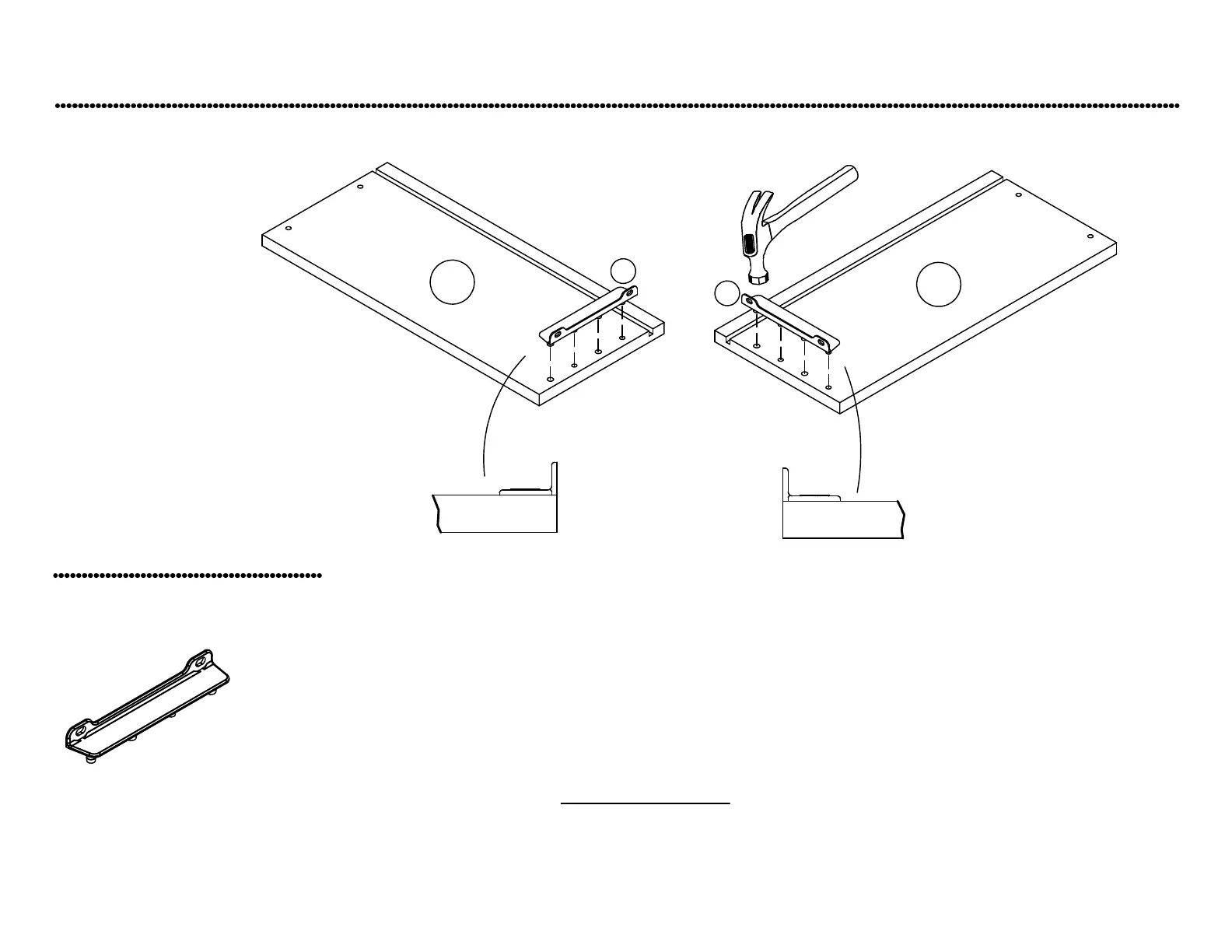 side as shown. Using a hammer, tap each drawer bracket stem part way into each hole. Repeat this process until the