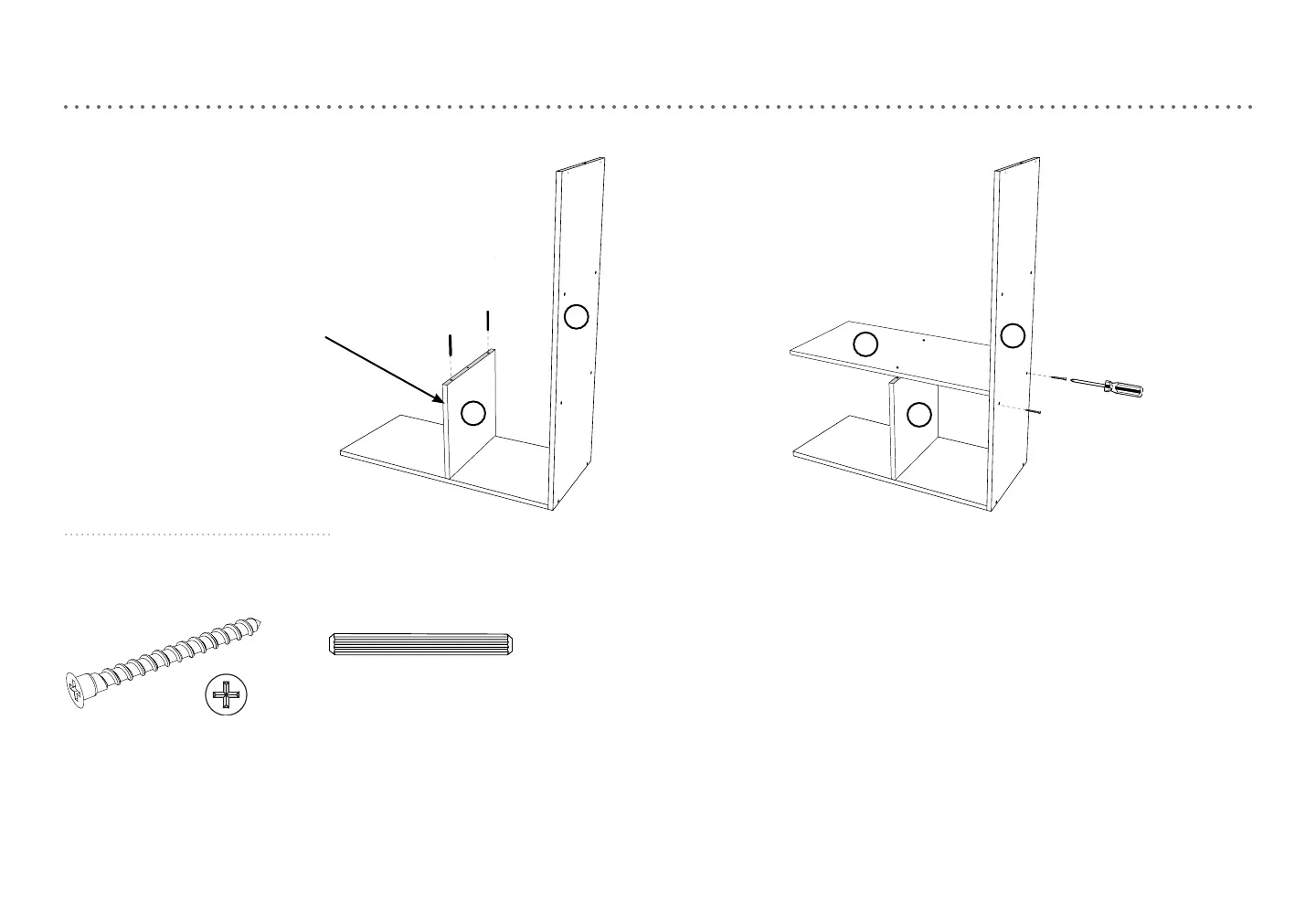 2. Attach horizontal divider down over dowels. Be sure to assemble with all nished edges to front.