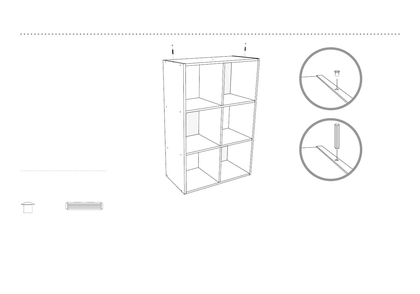 3. For stacking units: Insert dowels into top holes.